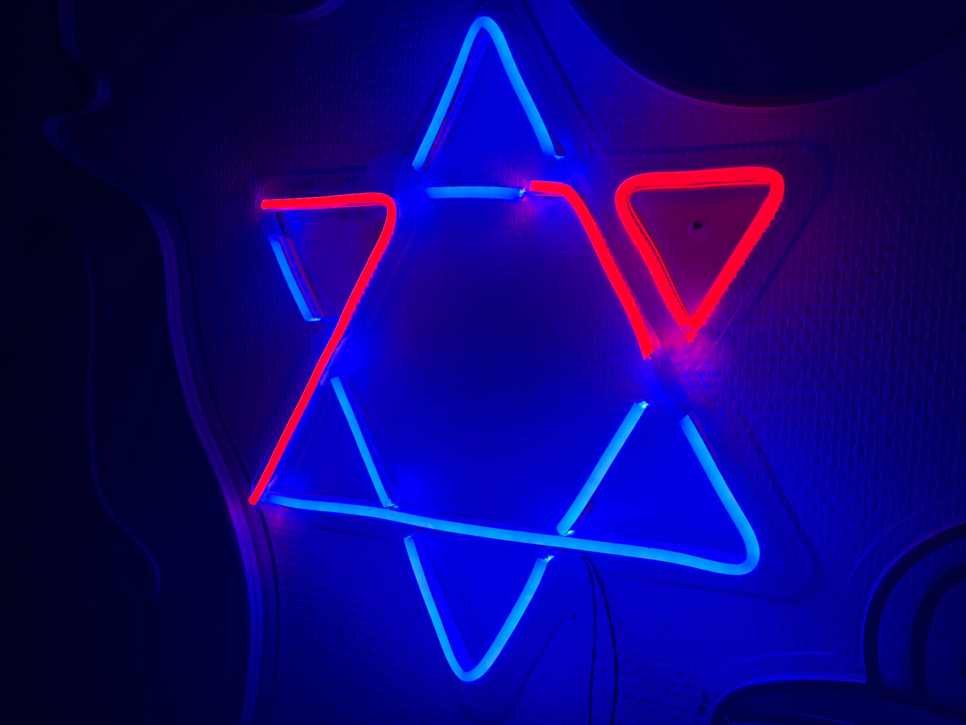 שלט ניאון מגן דוד לזכר אירועי ה7 באוקטובר (התאריך באדום)